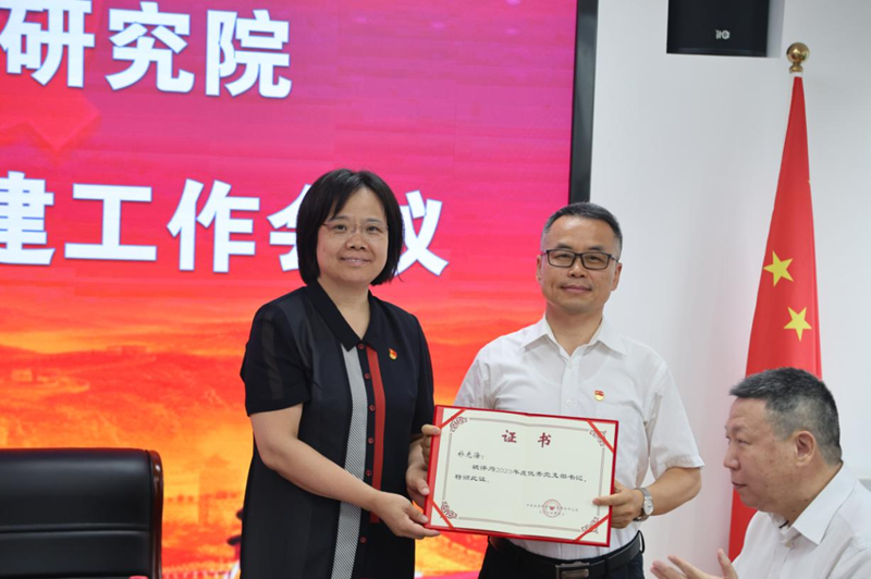 張冠梓向2023年度優(yōu)秀黨支部頒發(fā)表彰證書